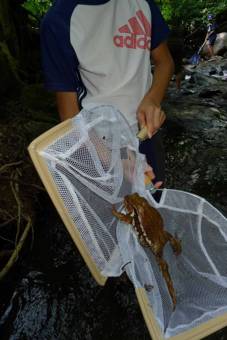 いきなり大きな蛙を発見し、普段あまり目にしない家内が気持ち悪いと