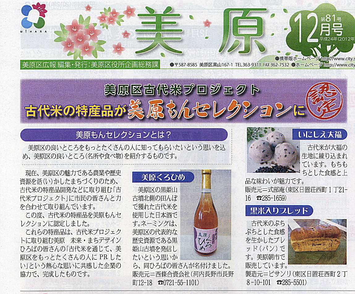 堺市美原区では古代米を使った町おこしを計画実行中で弊社のお酒