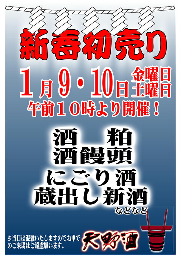 酒蔵ではこのえびす講に合わせて初売りセールを致します。