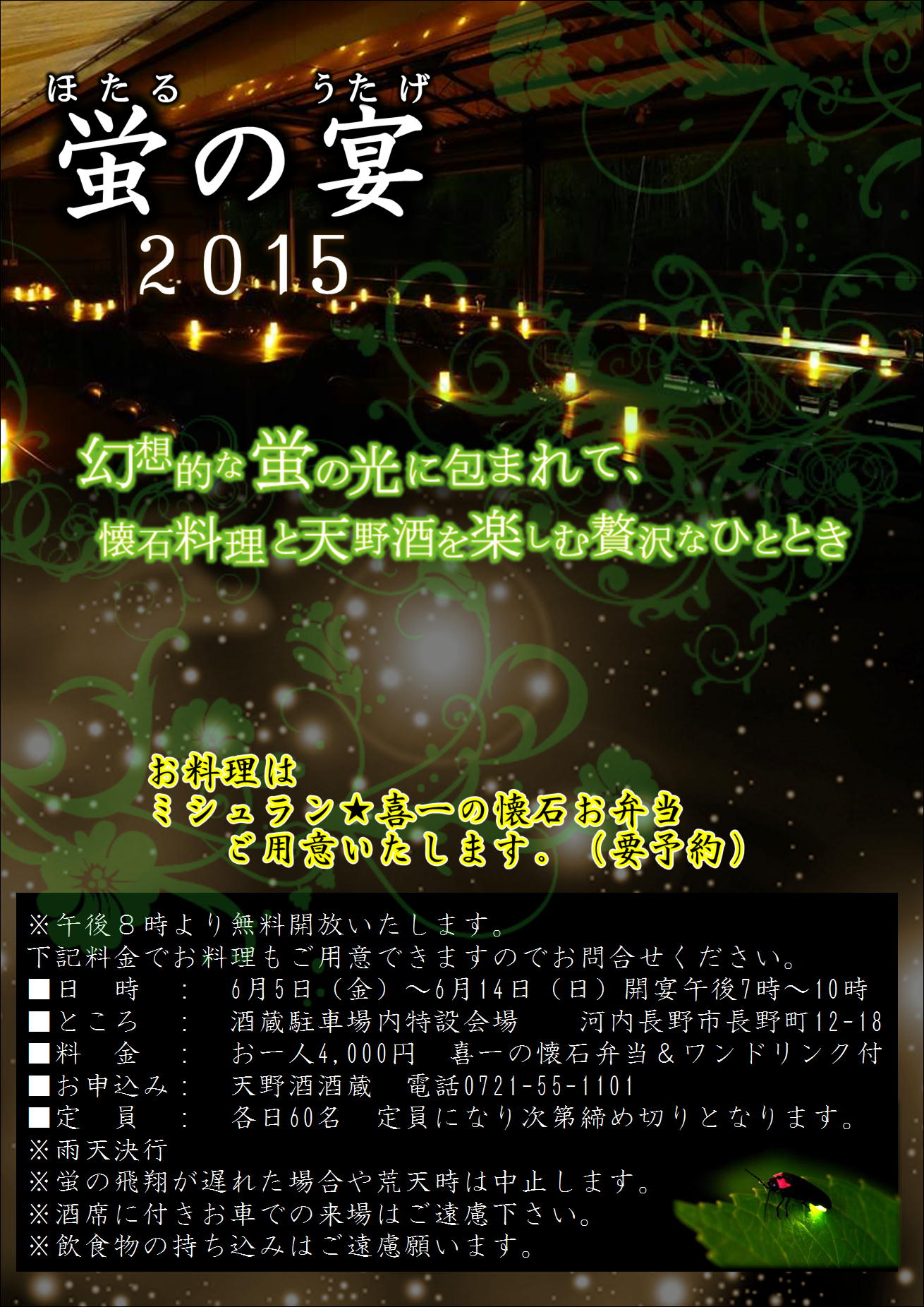 蛍の宴2015のご予約受付開始いたします。